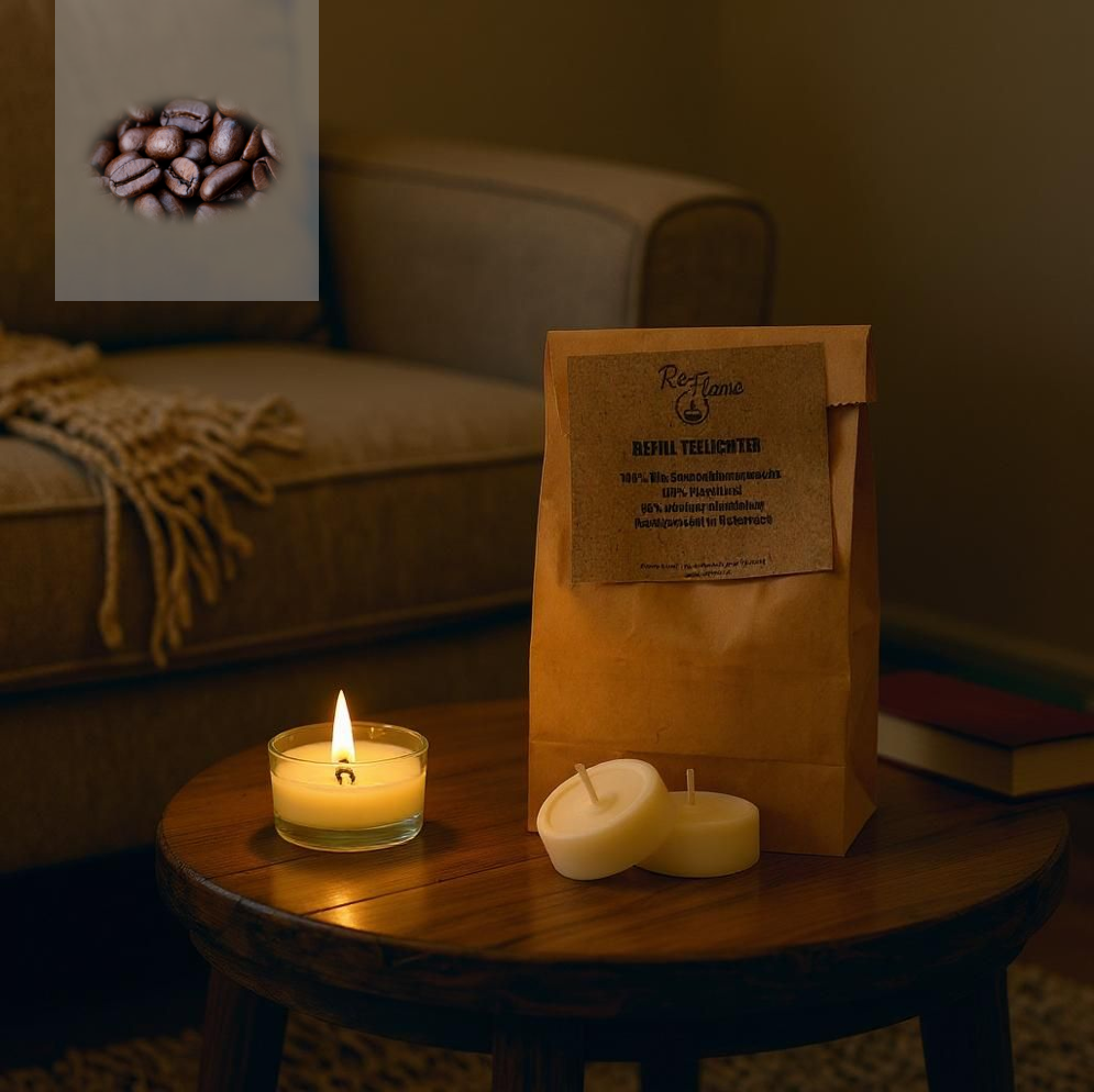 Hier bei Re-Flame gibt es nur nachhaltige Kerzen aus Bio-Sonnenblumenwachs. Egal ob unsere exklusive Reveal Knisterkerze oder die Refill Teelichter - jede Kerze ist ein Unikat.
