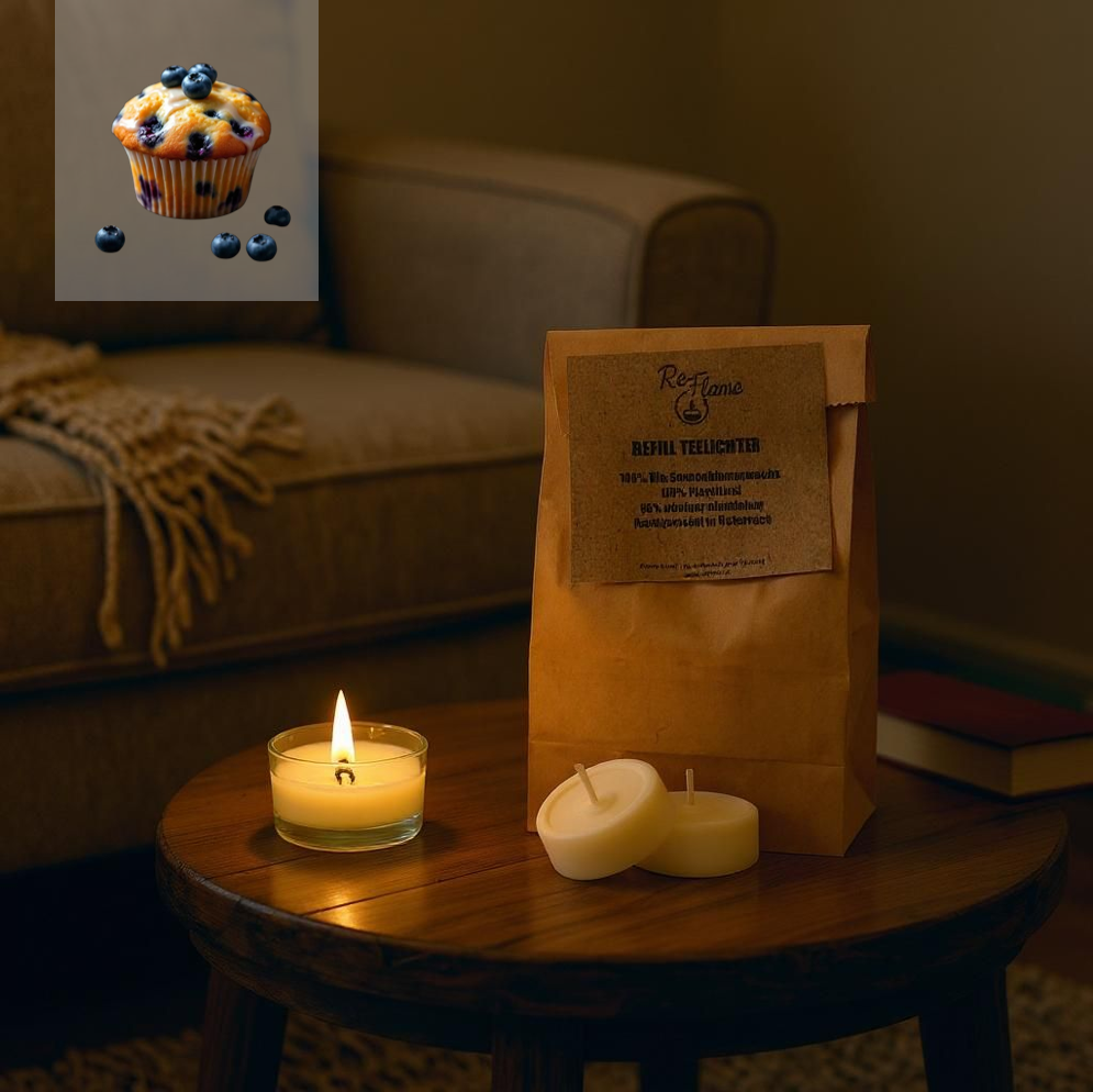 Statt Ofen brauchst du nur ein Feuerzeug – und schon zieht der wohlige Duft von Vanille, warmem Teig und süßen Heidelbeeren durch den Raum.
